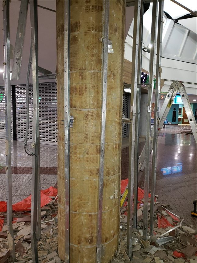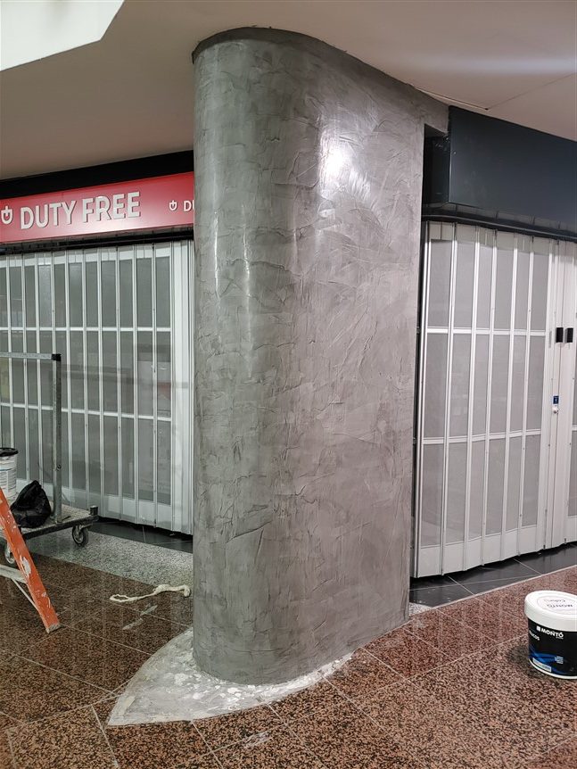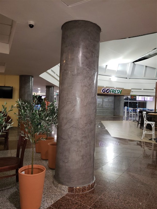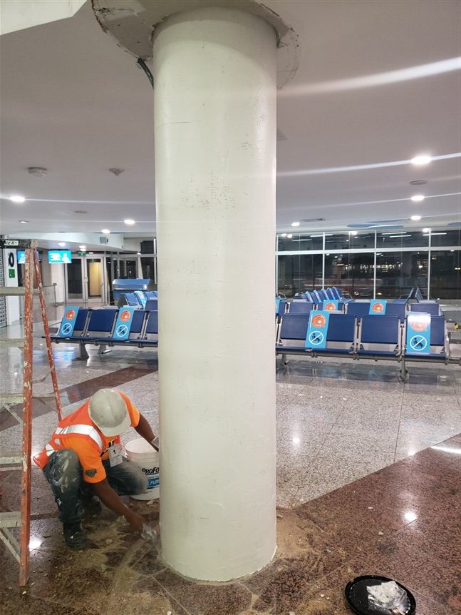 Cliente: Aeropuerto Internacional Las Américas Ubicación: Santo Domingo, DN Tipo de Proyecto: Cambio revestimiento de colummas y acabado final en estuco gris