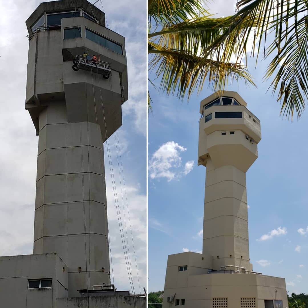 Recuperación y Pintura fachada torre de control Aeropuerto Internacional La Isabela Descripción del Proyecto Cliente: Aeropuerto Internacional La Isabela Ubicación: Santo Domingo, DN Tipo de Proyecto: Recuperación y Pintura de fachada