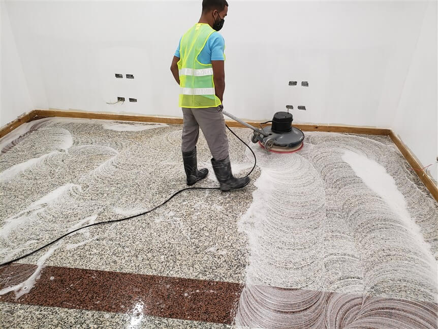 Limpieza y cristalizado de piso oficina de seguridad Aeropuerto Internacional de Las Américas